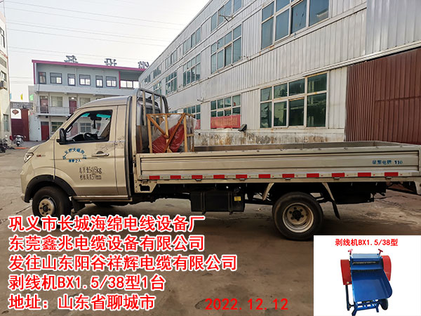 發(fā)往山東陽谷祥輝電纜有限公司 剝線機(jī)BX1.5/38型1臺