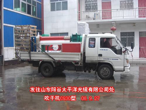 鞏義市長城海綿電線設(shè)備廠吹干機(jī)CG30型發(fā)往山東陽谷太平洋光纜有限公司