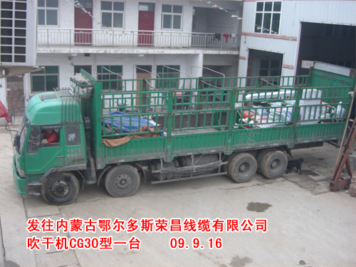 鞏義市長城海綿電線設(shè)備廠吹干機(jī)CG30型發(fā)往內(nèi)蒙古鄂爾多斯榮昌線纜有限公司