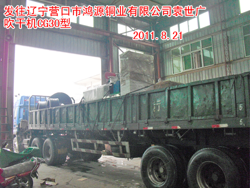鞏義市長城海綿電線設(shè)備廠吹干機(jī)CG30型發(fā)往遼寧營口市鴻源銅業(yè)有限公司