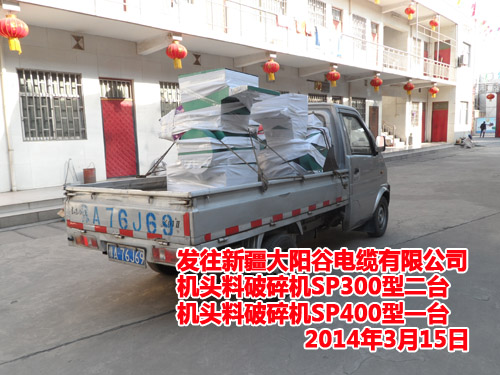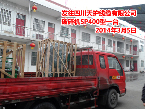 發(fā)往昆明春城電纜廠機(jī)頭料破碎機(jī)SP400型一臺