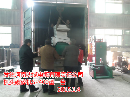 發(fā)往焦作鐵路電纜有限責(zé)任公司機(jī)頭料破碎機(jī)SP400型一臺