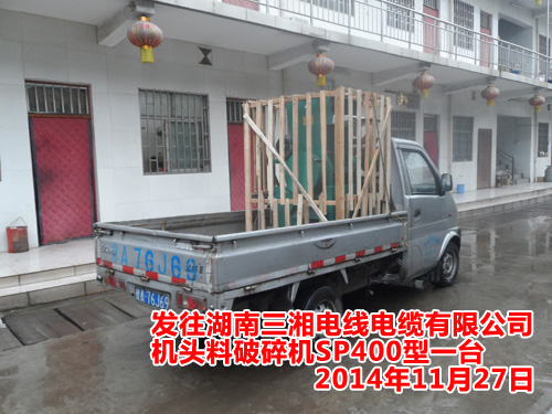 發(fā)往湖北安耀紅旗電纜股份有限公司機(jī)頭料破碎機(jī)SP400型一臺