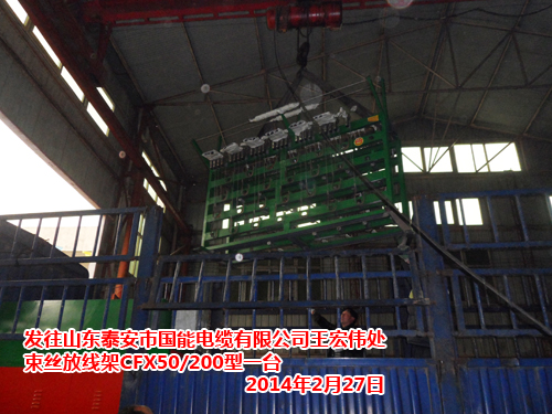 鞏義市長城海綿電線設(shè)備廠發(fā)往山東泰安市國能電纜有限公司束絲機CS400BE型一臺、束絲放線架CFX50/200型一臺