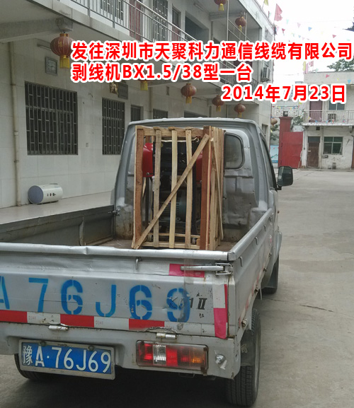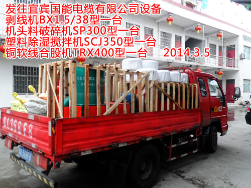 發(fā)往吉林徽商特種電纜有限公司剝線機BX1.5/38型一臺塑料除濕攪拌機SCJ500型一臺